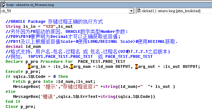 Package 包过程执行,支持格式:用户名.包名.过程名 或 包名.过程名(V2017.7.2.1 之后版本)