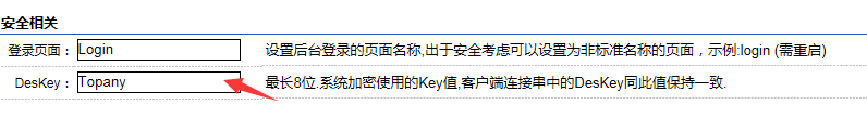 说明:客户端同服务器交互的关键字段会被 DES 机密,这里设置一个自定义的 Key,可以防止别的系统同服务器进行通讯握手。这个 Key 在客户端的连接串里也会用到,需要和这里对应。